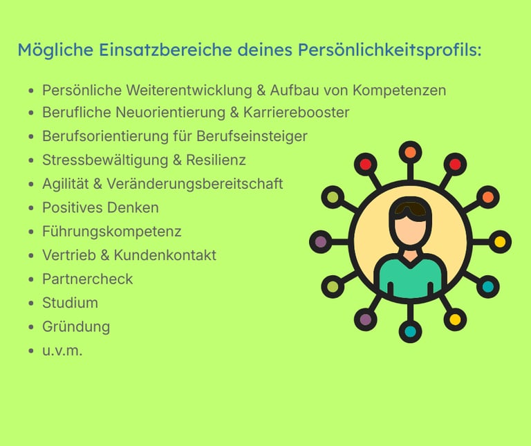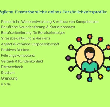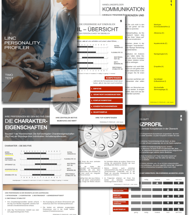 Das umfangreiche Persönlichkeitsprofil ist eine einzigartige Gelegenheit dich besser zu verstehen, Eigenverantwortung zu übernehmen und deine wichtigen Lebensbereiche so zu gestalten, wie es sich für dich richtig anfühlt.